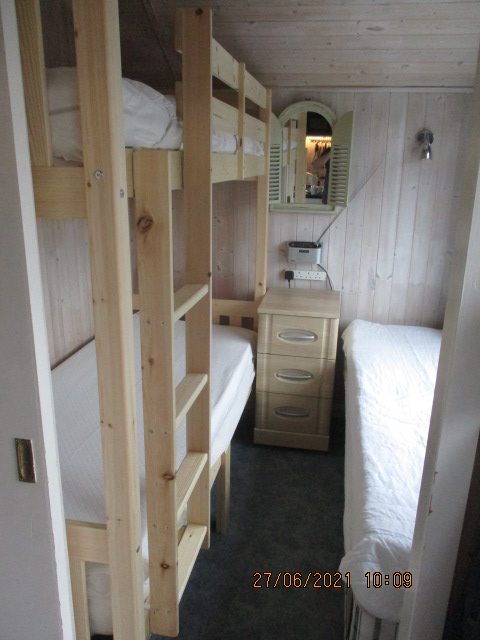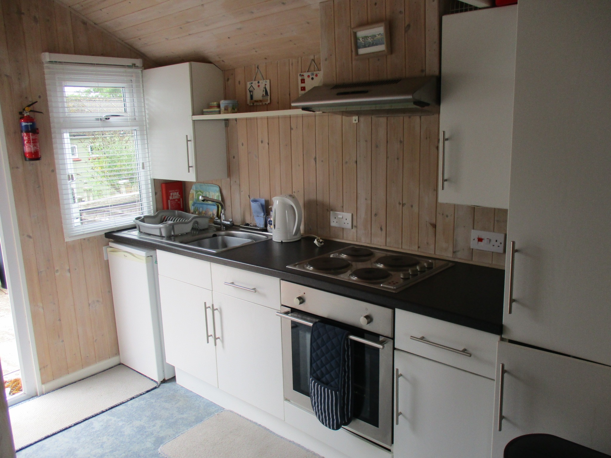 The chalet has a separate bedroom (sleeps up to 3) and a bathroom with shower, basin and WC. The chalet has a fitted kitchen with a hob, oven, fridge, freezer, microwave and a lounge area with a double sofa bed, dining table and chairs, radio, Freeview TV, DVD and a heater.