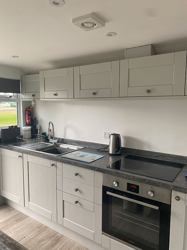 Fitted out to a high standard you will have everything you need to make your stay enjoyable. There is a 32″ Freeview TV with built in DVD player (bring your own DVD’s if required) microwave oven, electric oven with hob, kettle, toaster, fridge with small freezer compartment. USB ports are plentiful. Free ,fast Wi-Fi included.