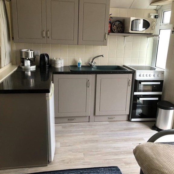 The kitchen has a cooker, microwave, fridge and all necessities.