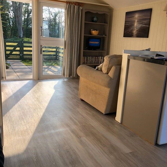 The chalet is open plan and sleeps up to 4, comprising of two double sofa beds with dividing curtains.