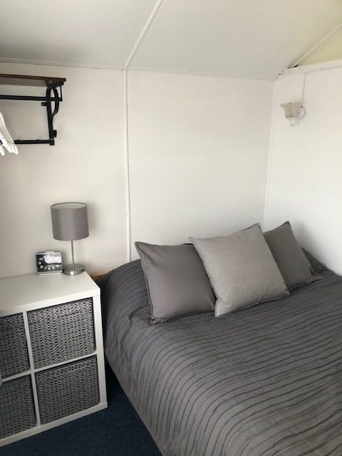 It has a separate bedroom with a double bed, Hanging space and storage units in a bedside chest. There is a hairdryer, Iron and underbed storage.
