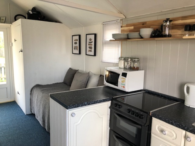 There is a separate enclosed toilet and wash basin and there are warm clean communal showers situated in the nearby shower block just behind the chalet which is only available to chalet users.