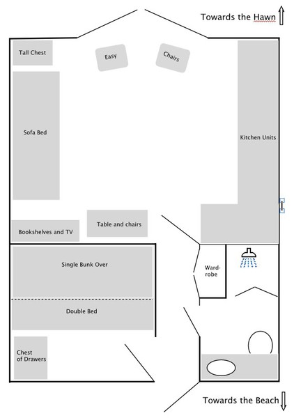 The chalet is double glazed and fitted with panel heating which keeps it snug in the coldest weather. There is also a fan for summer use. It is situated about half way between the site entrance and the Beach Shop. You can park immediately outside.