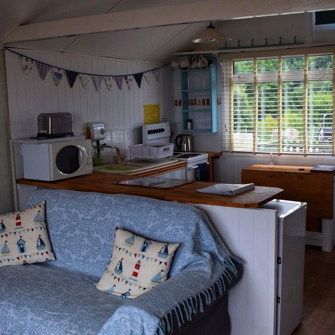 Inside the chalet is open plan with a vintage style, it has the feel of stepping back in time.