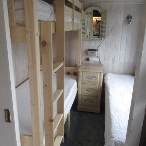 The chalet has a separate bedroom (sleeps up to 3) and a bathroom with shower, basin and WC. The chalet has a fitted kitchen with a hob, oven, fridge, freezer, microwave and a lounge area with a double sofa bed, dining table and chairs, radio, Freeview TV, DVD and a heater.