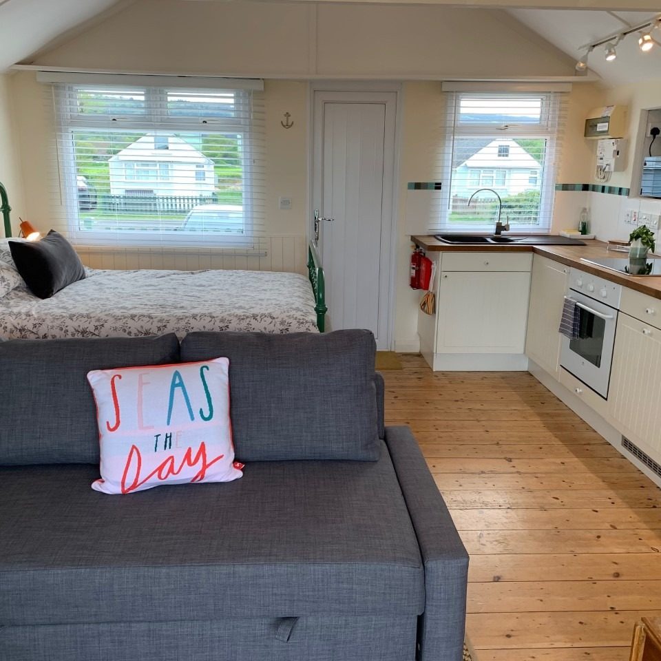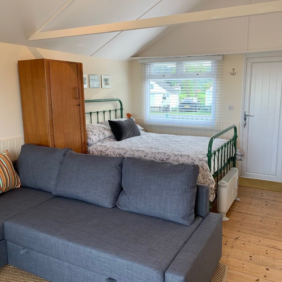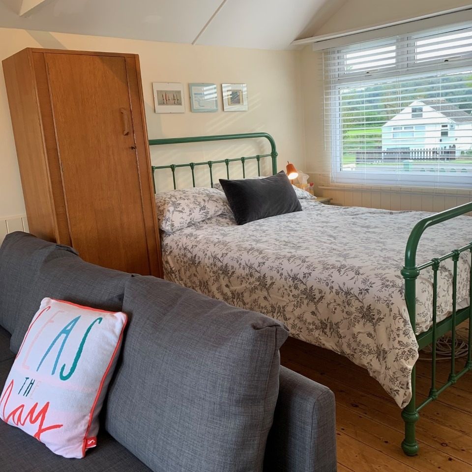 There is a full-size double bed with high-quality pocket-sprung mattress so there is no need to convert the sofa bed if just 2 people are staying. The large corner sofa is also simply converted to a king-size bed with comfy mattress-topper, so the chalet easily accommodates 4 people when needed. There is also a small Toshiba TV/DVD player and DB radio in the lounge area.