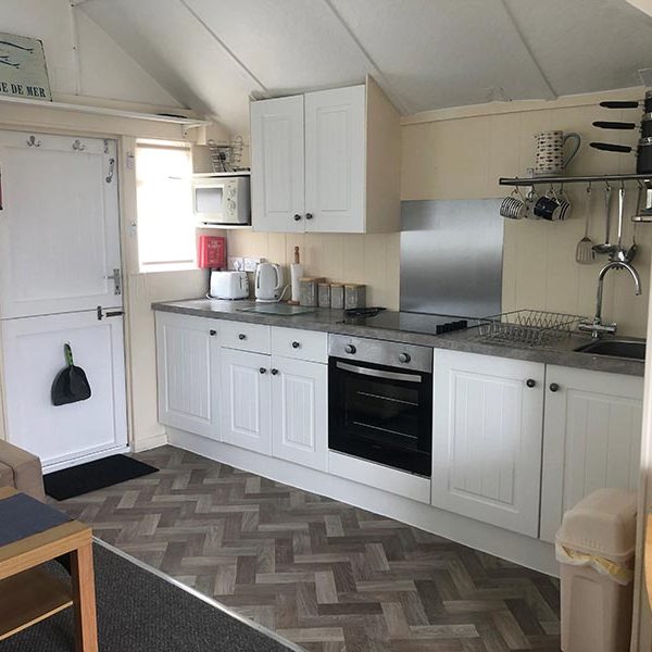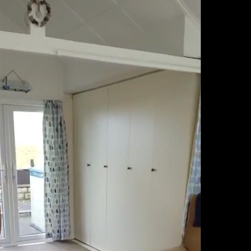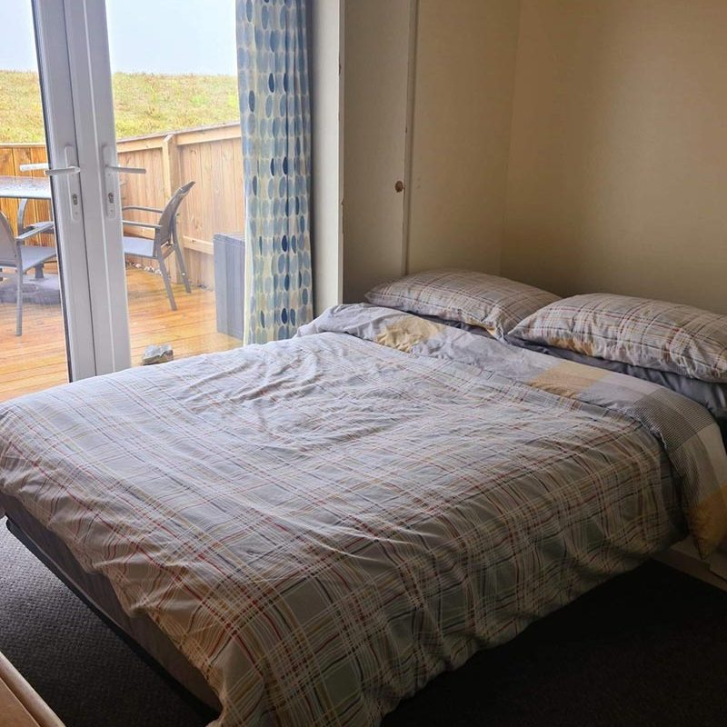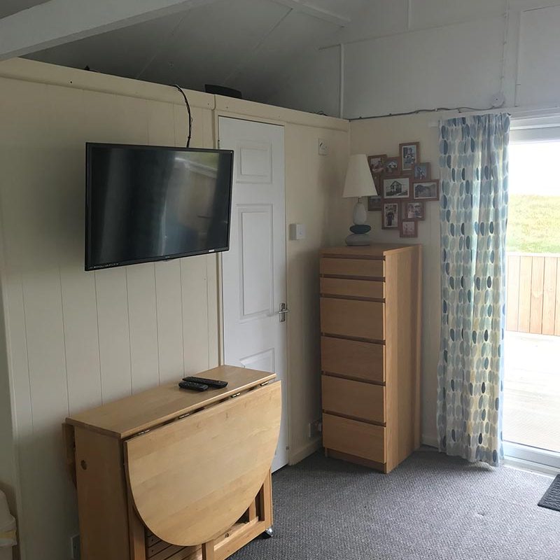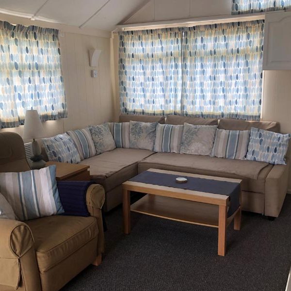 Beach side with a car space between neighbouring chalets. Sleeps: 3/4 pull down bed, curtained off, plus double bed settee.