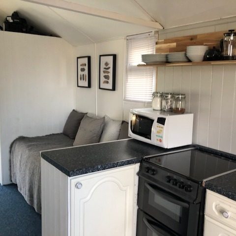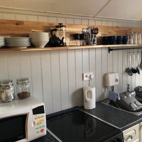 The kitchen is fitted with oven, hob, fridge with small freezer section, Toaster, kettle, and Microwave. Tea towels, and complimentary tea, coffee and sugar are included